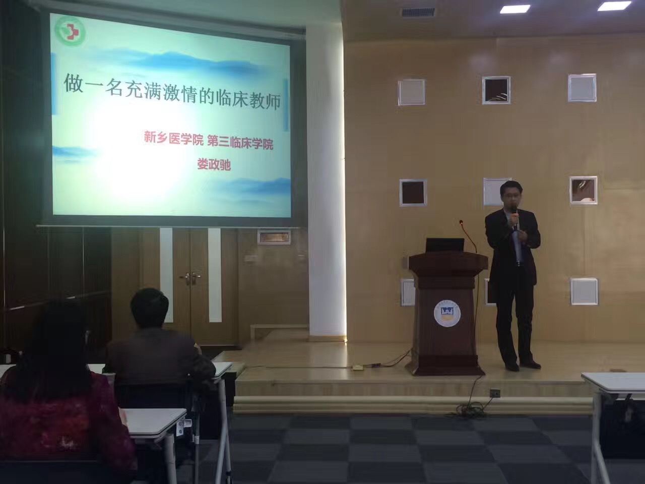 4月20日下午,新乡医学院第三附属医院中医科主任娄政驰应邀在平原校区行政楼报告厅作“做一名充满激情的临床教师”专题讲座。教师教学发展中心主任李东亮教授和顾问马振江教授出席。 首先,李东亮致辞,对娄政驰的到来表示热烈欢迎,并简要介绍了娄政驰的基本情况。 讲座开始,娄政驰以自己的求学和工作经历为例,介绍他在教学准备阶段,反复修改教案,积极参加集体备课,认真总结学生反馈,通过海量阅读储备知识;在课堂呈现时,注意教师仪表仪态,避免平铺直叙的讲授语调,设计吸引学生的课堂导入;在教学评价方面,严格要求学生言行,通过形成性评价,对学生学习和实习情况进行反馈,特别是学生临床实习阶段,以医生的标准从严管理。他强调作为一名医学专业的教师应该在课堂上向学生传递正能量,为人谦虚,不断钻研专业,以学生的发展和需要为出发点,兢兢业业,为人师表。 最后,李东亮总结发言。他对娄政驰的精彩讲座表示由衷的感谢,鼓励教师们从讲座中汲取适合自己的教学方法,于细微处追求更加完美的教学效果,教师教学发展中心愿意帮助所有教师成长为更优秀的自己。 主讲人简介 娄政驰,男,新乡医学院第三附属医院中医科主任,新乡医学院第三临床学院中医学教研室主任,硕士研究生,主治医师,讲师,中国老年保健医学研究会中医保健分会委员,中华中医药学会综合医院中医药工作委员会委员,新乡市健康教育巡讲专家库专家,新乡电视台《健康大讲堂》中医养生专家,新乡医学院人事处“教师发展中心”培训讲师。